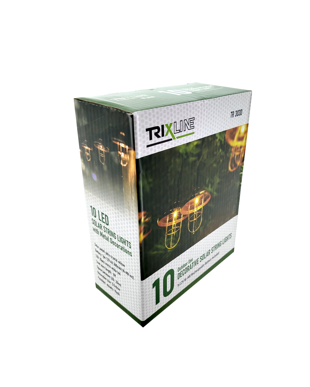 Stylowe i oszczędne rozwiązanie do oświetlenia Twojego ogrodu, tarasu lub balkonu. LED solarne światło TR-303D składa się z dziesięciu ciepłych białych diod LED rozmieszczonych na kablu o długości 3,8 metra. Dzięki zasilaniu solarnemu i możliwości wyboru trybów świecenia jest idealny do użytku na zewnątrz bez konieczności podłączania do sieci elektrycznej.