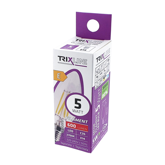 Dekoracyjna żarówka LED FILAMENT Trixline 5W 600lm C35 E14 ciepła biała