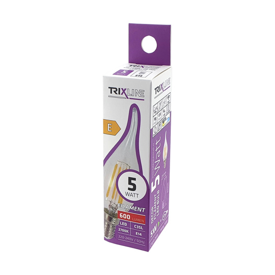 Dekoracyjna żarówka LED FILAMENT Trixline 5W 600lm C35L E14 ciepła biała