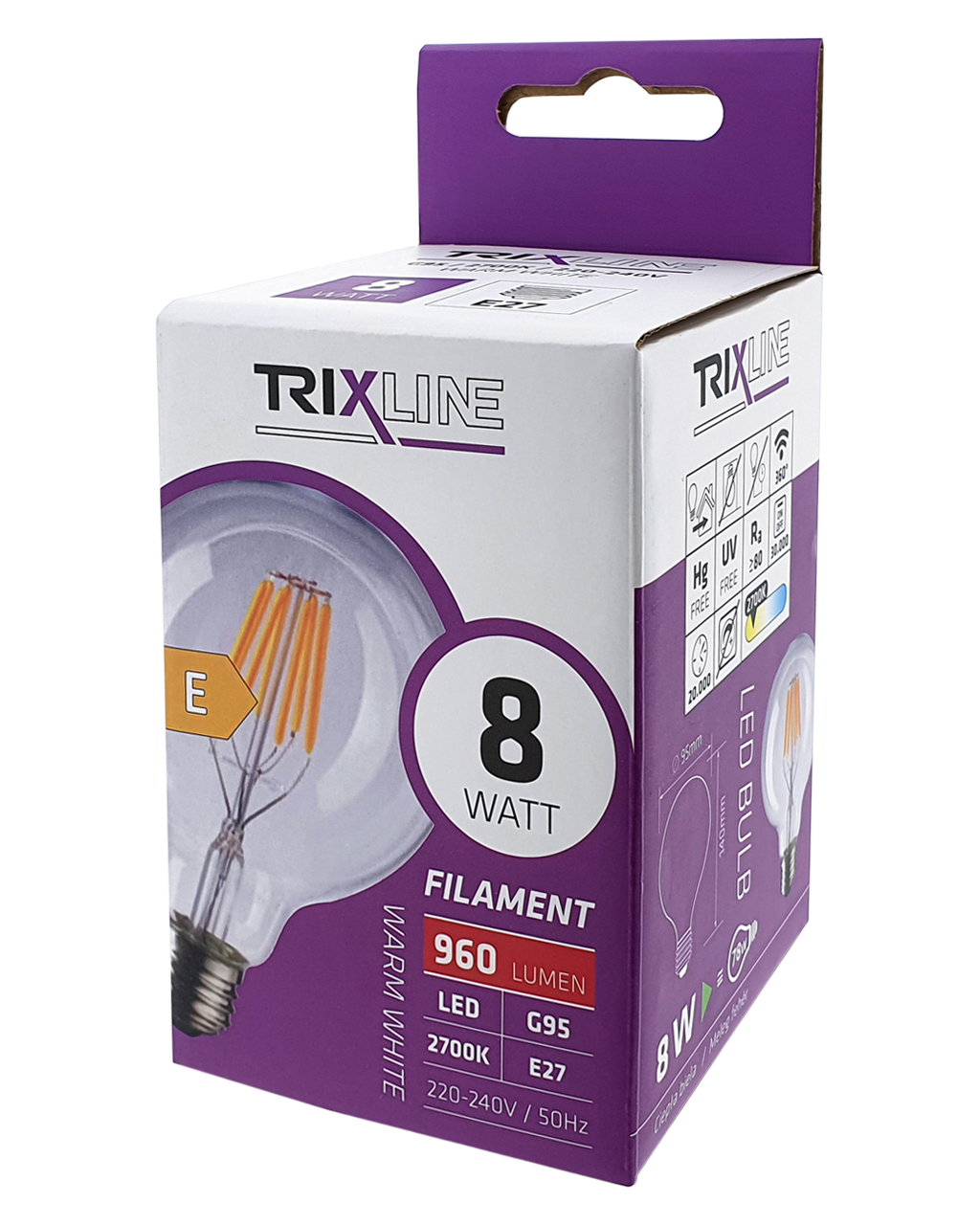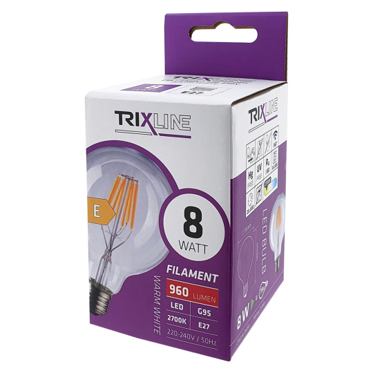 Dekoracyjna żarówka LED FILAMENT Trixline 8W 960lm G95 E27 ciepła biała