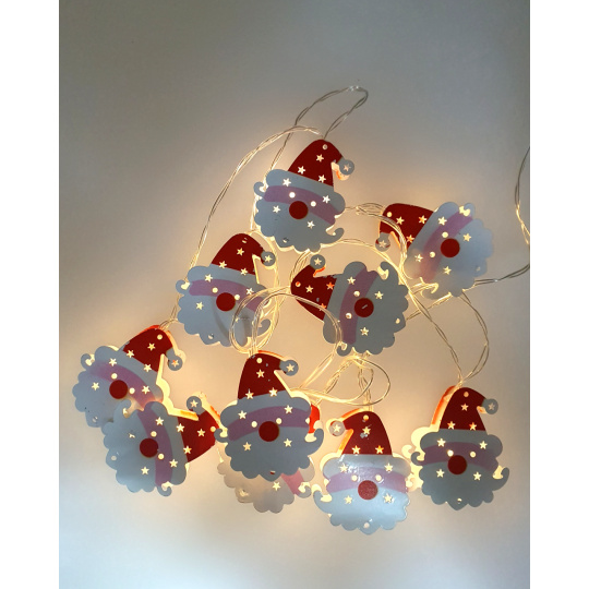 Ozdób swój dom lub ogród stylową girlandą z 10 metalowymi światełkami w kształcie Mikołaja. Ciepłe białe oświetlenie LED wprowadza przyjemny świąteczny nastrój, a dzięki zasilaniu na baterie można je łatwo umieścić w dowolnym miejscu – nawet bez gniazdka.