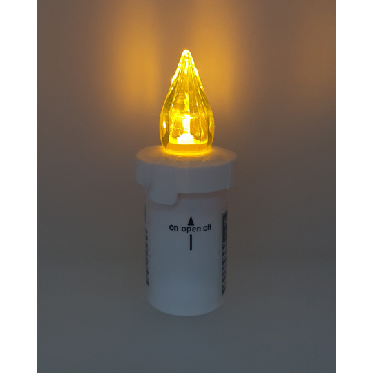 Biała świeca LED HD-130 HOME DECOR z żółtym migoczącym płomieniem.Odpowiednia alternatywa dla klasycznej świecy do wnętrz. Łatwe i bezpieczne użycie bez ryzyka pożaru. Włączenie przez obrócenie pokrywki. Zasilane za pomocą 2 baterii AA-R6 1,5V (w zestawie).