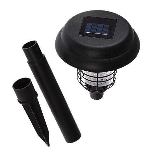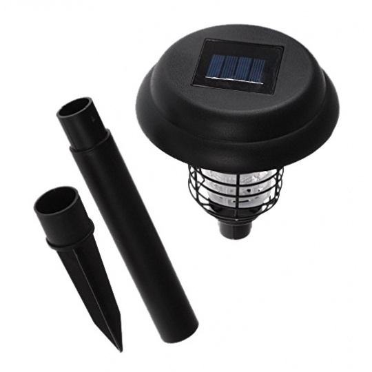 LED solarna lampa, z dwoma LED, 1x klasyczna biała do dekoracyjnego oświetlenia i 1x UV fioletowa LED do likwidacji komarów.