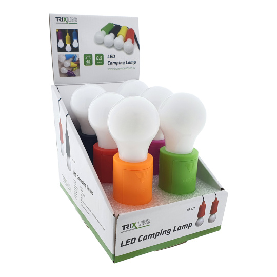 Latarka – imitacja żarówki ze sznurkiem do zawieszenia. Świetny dodatek podczas biwakowania przy niedostatecznym oświetleniu. Użyty materiał charakteryzuje się swoją odpornością i długą żywotnością. Włącza/wyłącza się pociągnięciem sznurka.