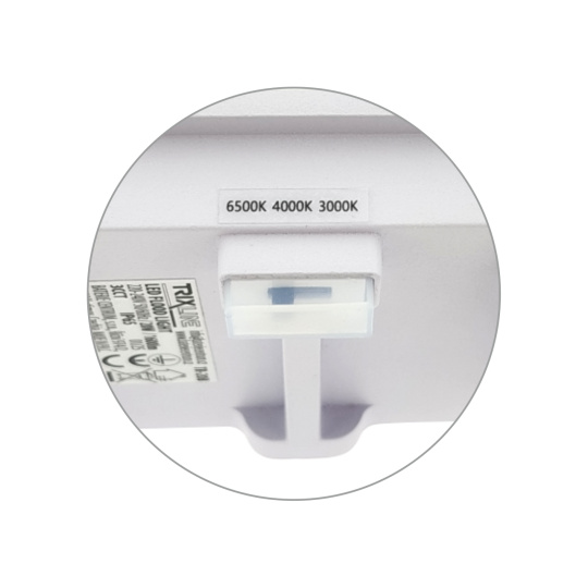 Praktyczny przełącznik CCT umożliwia łatwe wybranie temperatury światła według potrzeb – ciepła biel 3000K, neutralna biel 4000K lub zimna biel 6500K.