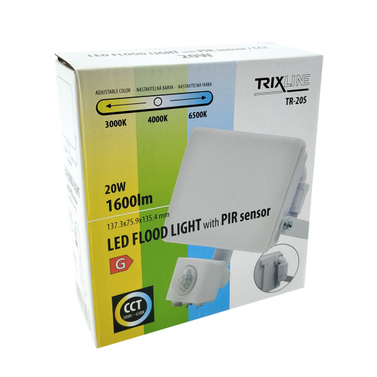 Bezpečnostní informace (PDF)LED FLOOD 3CCT Reflektor TR-20S 20W z czujnikiem Trixline