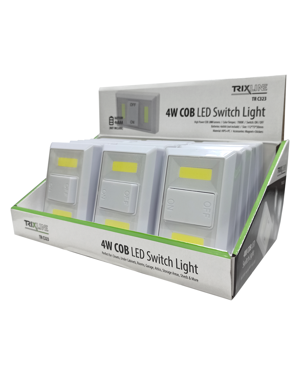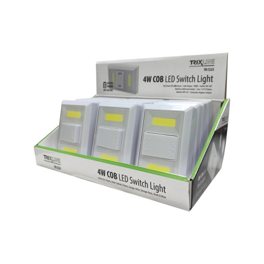 Praktyczny, wydajny, nocny włącznik światła TR C323 zasilany 4xAAA bateriami. Magnetyczne mocowanie. Włącznik/wyłącznik na przedniej stronie.