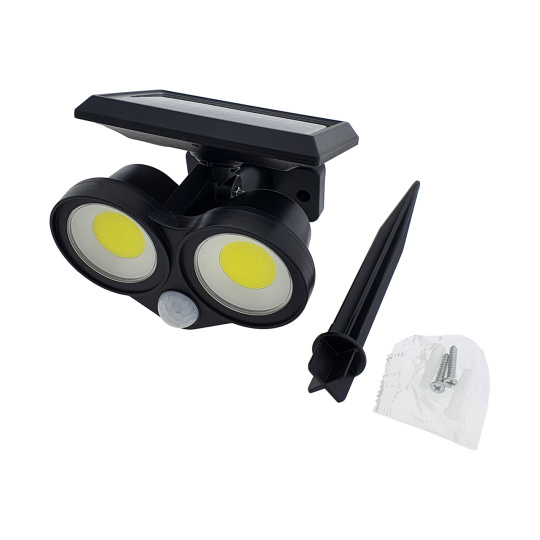 Zawartość opakowania: 1 szt. LED reflektor solarny, 1 szt. kołek do wbijania, 2 śrubki, 2 kołki rozporowe
