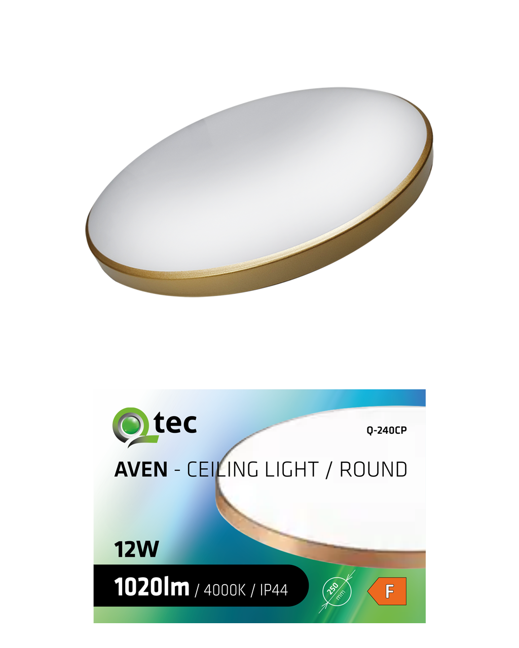 LED sufitowa lampa AVEN Q-240CP 12W 1020lm 4000K ø25cm/okrągła złota QTEC