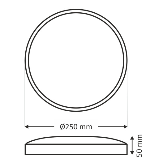 - Zewnętrzny wymiar światła: ø250x50mm
