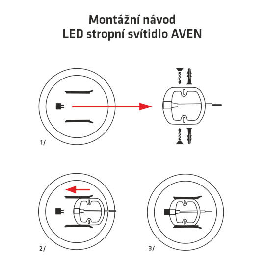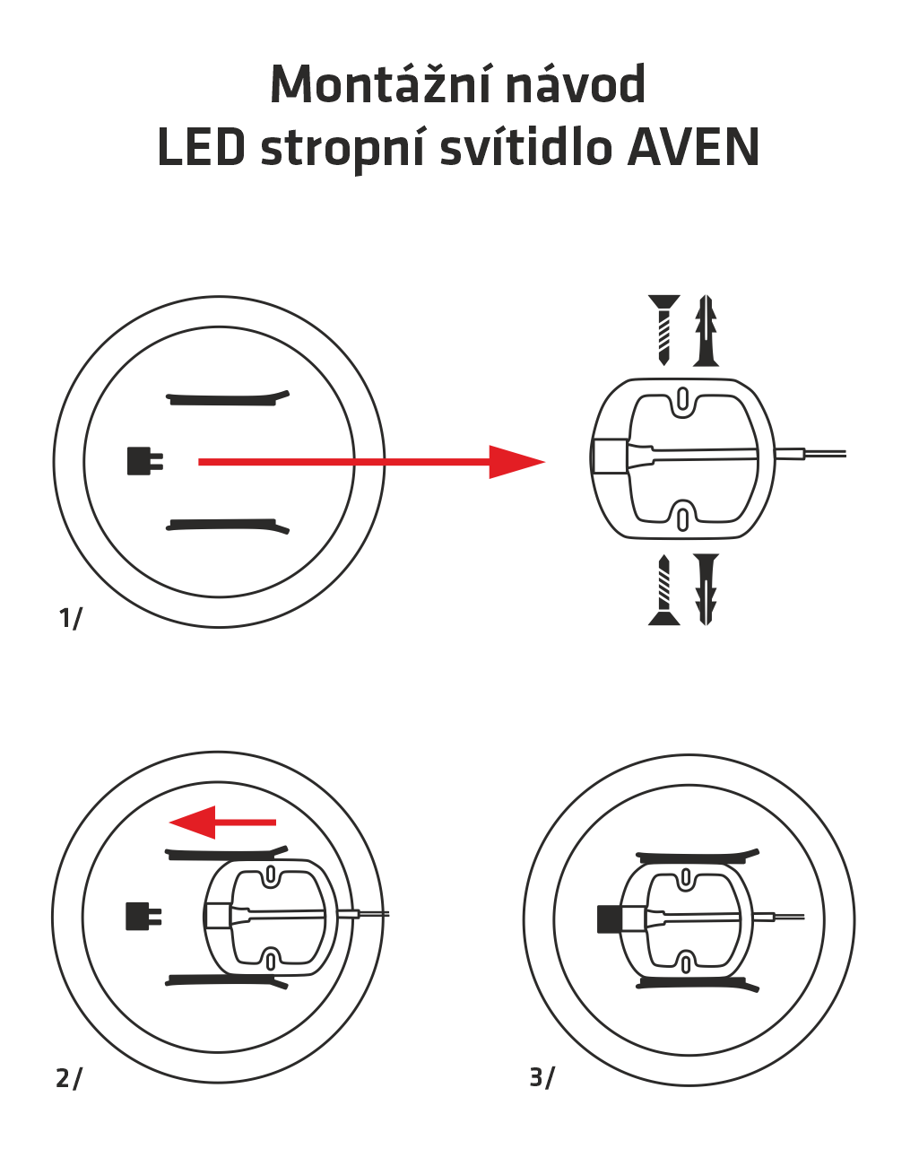 - Przymocuj uchwyt światła do solidnego podłoża np. na sufit, ścianę itp. (w zestawie 2 śruby, 2 kołki).