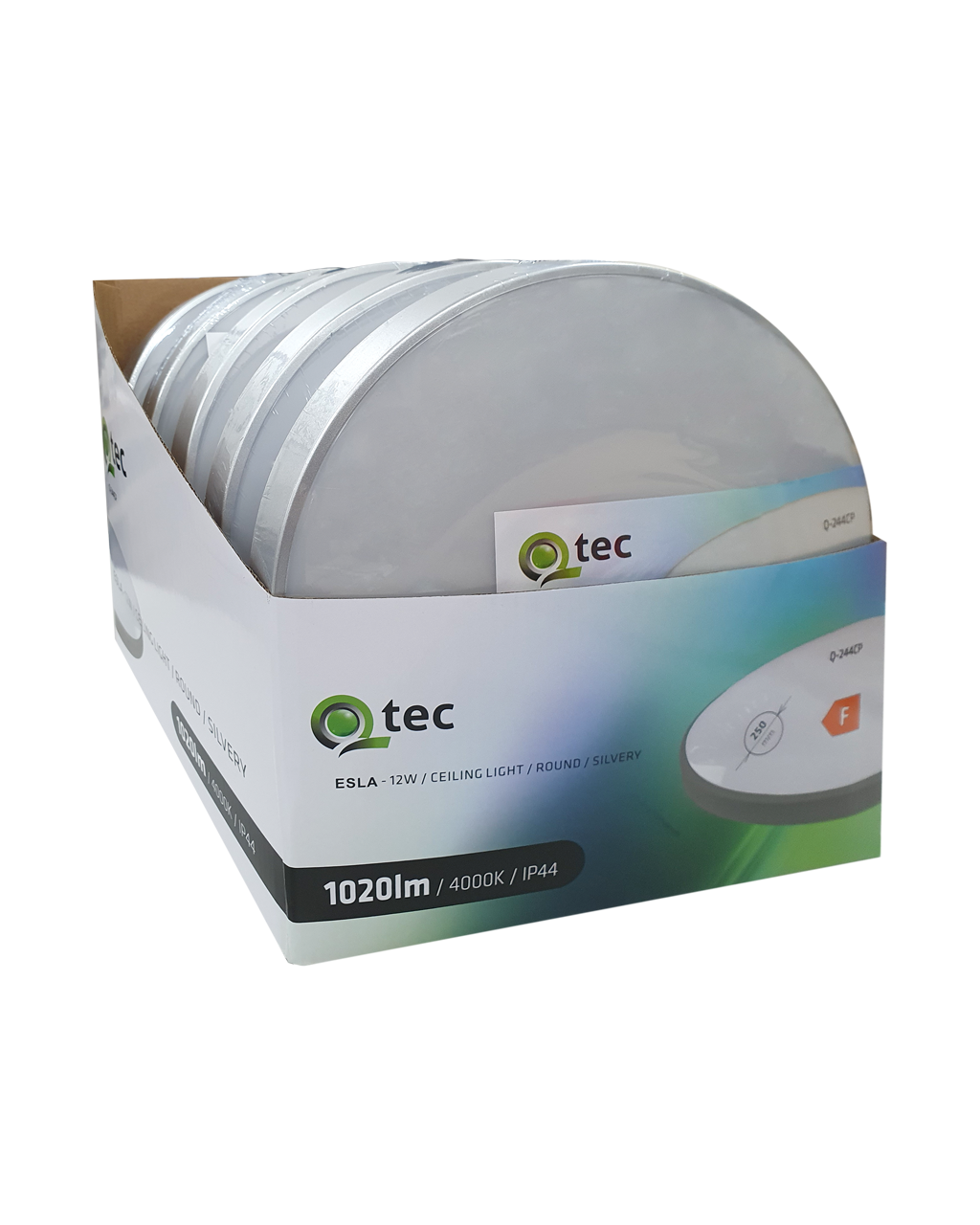 Zawartość opakowania: Światło Q-244CP, 2x śrubki, 2x kołki rozporowe, instrukcja obsługi