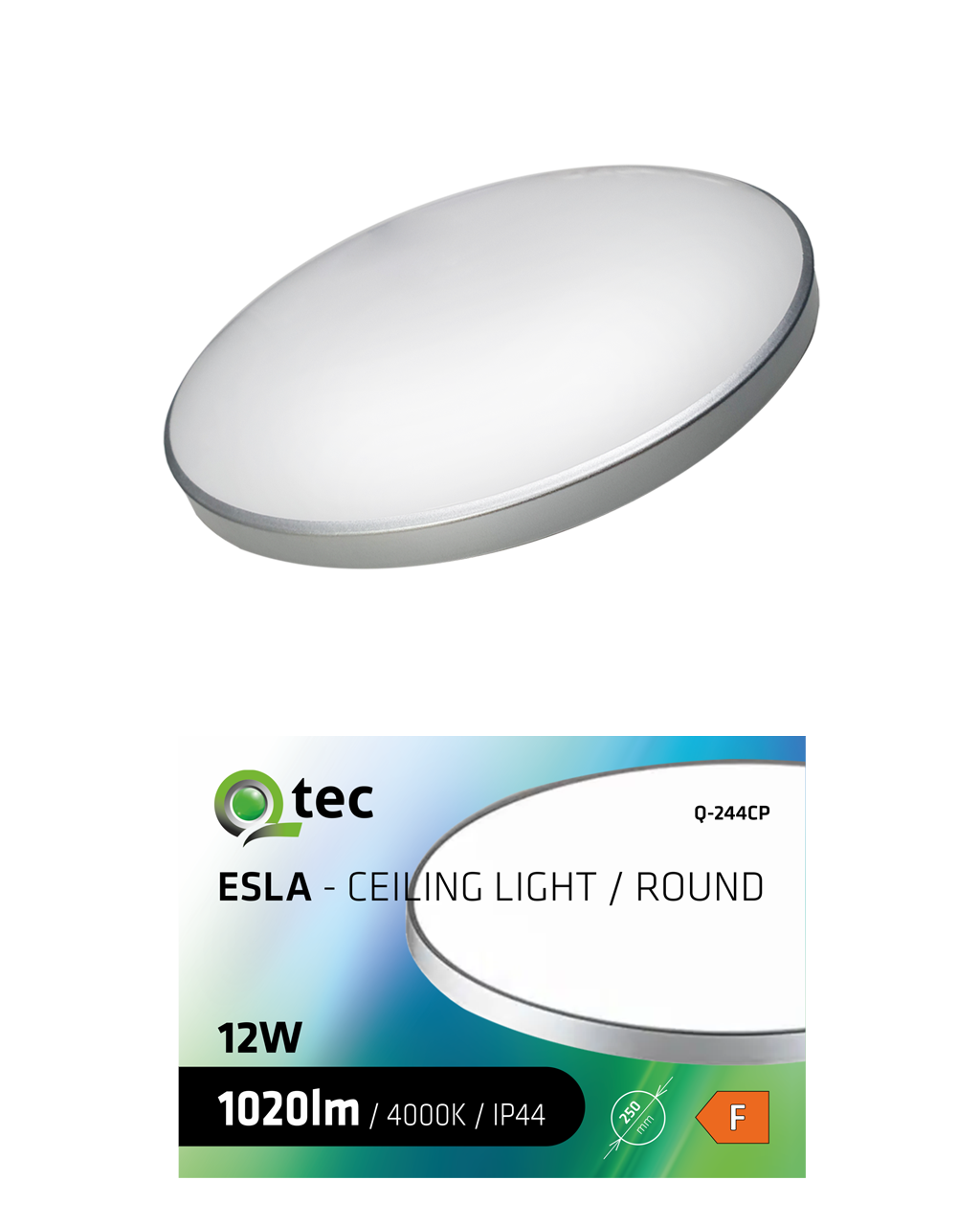 LED sufitowa lampa ESLA Q-244CP 12W 1020lm 4000K ø25cm/okrągła srebrna QTEC