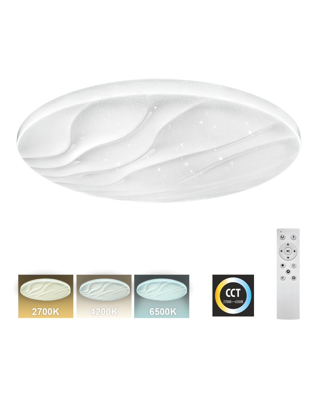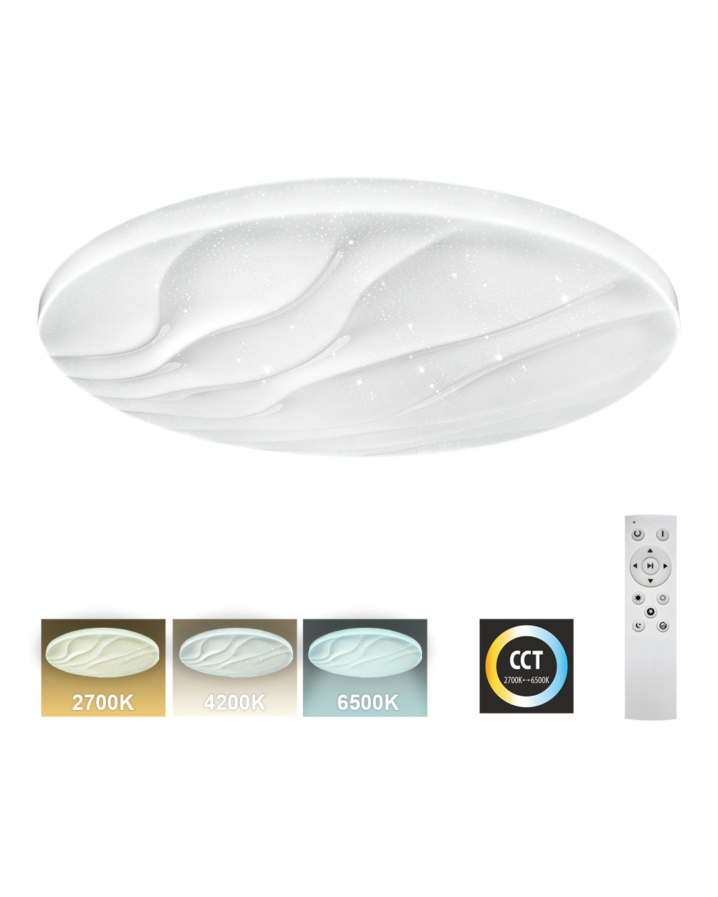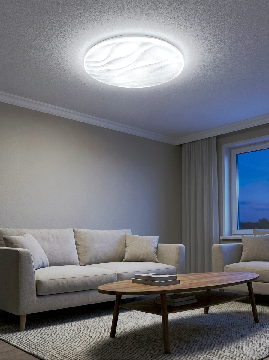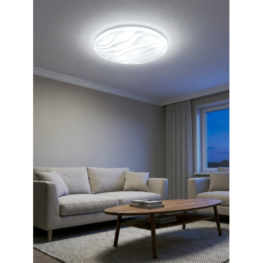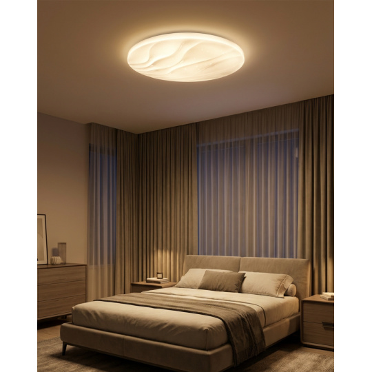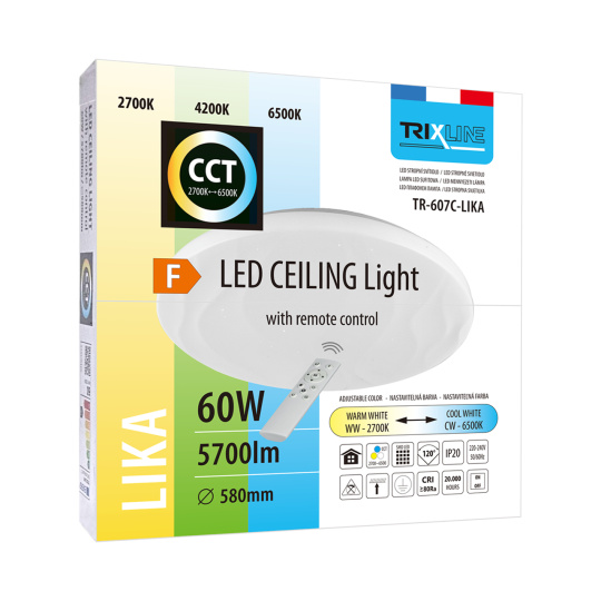 LED sufitowa lampa TR-607C - LIKA Trixline w kolorze białym z efektem błyszczenia jest przeznaczona do wnętrz takich jak salony, sypialnie, hale, biura, korytarze i podobne miejsca. Za pomocą dołączonego pilota możesz przełączać się między trzema temperaturami barwowymi w zakresie od 2700K do 6500K, które można ściemniać według potrzeb, aby stworzyć przyjemną atmosferę. Przy maksymalnym przyciemnieniu zużycie spada do zaledwie 8W z pierwotnych 60W, co gwarantuje oszczędność energii.Inną opcją na pilocie jest tryb nocny oraz funkcja 30 sekund, po upływie których lampa LED wyłączy się automatycznie. Po wyłączeniu lampa zapamiętuje ostatni ustawiony tryb, co zapewnia wygodne i intuicyjne użytkowanie.