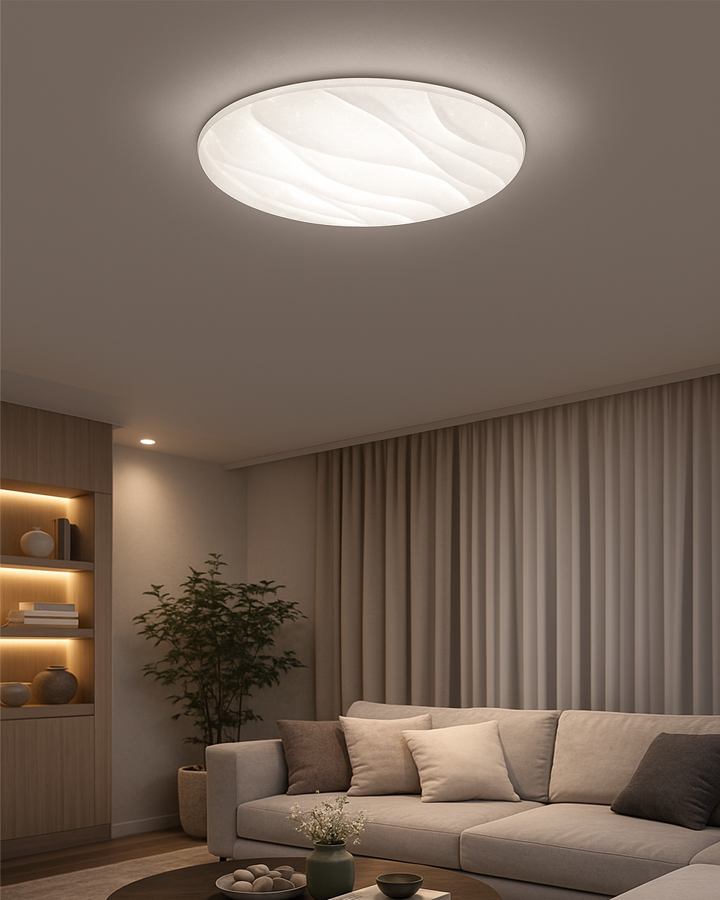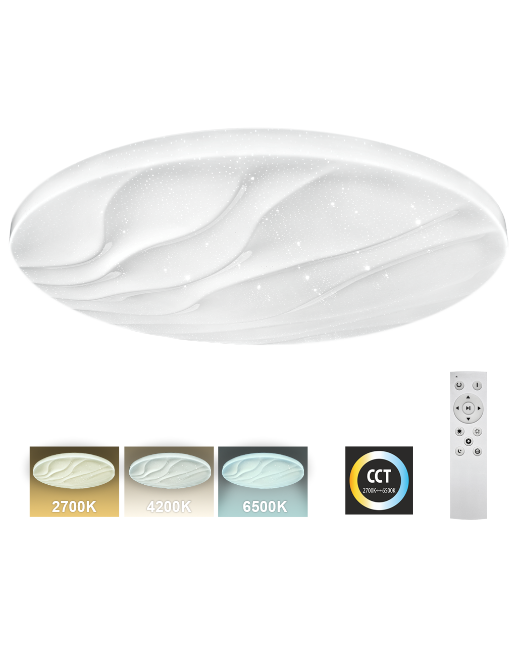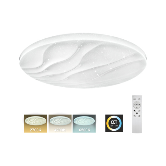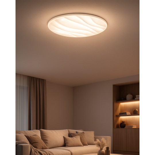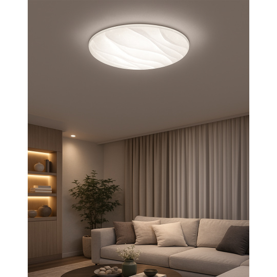 LED sufitowa lampa TR-608C - LIKA Trixline w białym kolorze z efektem błyszczenia jest przeznaczona do wnętrz takich jak salony, sypialnie, hale, biura, korytarze i podobne miejsca. Za pomocą dołączonego pilota możesz przełączać się między trzema temperaturami barwowymi w zakresie od 2700K do 6500K, które można ściemniać według potrzeb, aby stworzyć przyjemną atmosferę. Przy maksymalnym przyciemnieniu zużycie spada do zaledwie 14W z pierwotnych 80W, co gwarantuje oszczędność energii.Inną opcją na pilocie jest tryb nocny oraz funkcja 30 sekund, po upływie których lampa LED wyłączy się automatycznie. Po wyłączeniu lampa zapamiętuje ostatni ustawiony tryb, co zapewnia wygodne i intuicyjne użytkowanie.