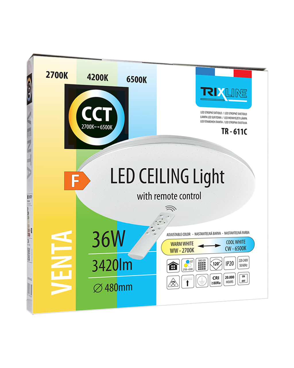 LED sufitowa lampa TR-611C - VENTA 36W 3420lm ø48cm CCT + pilot Trixline