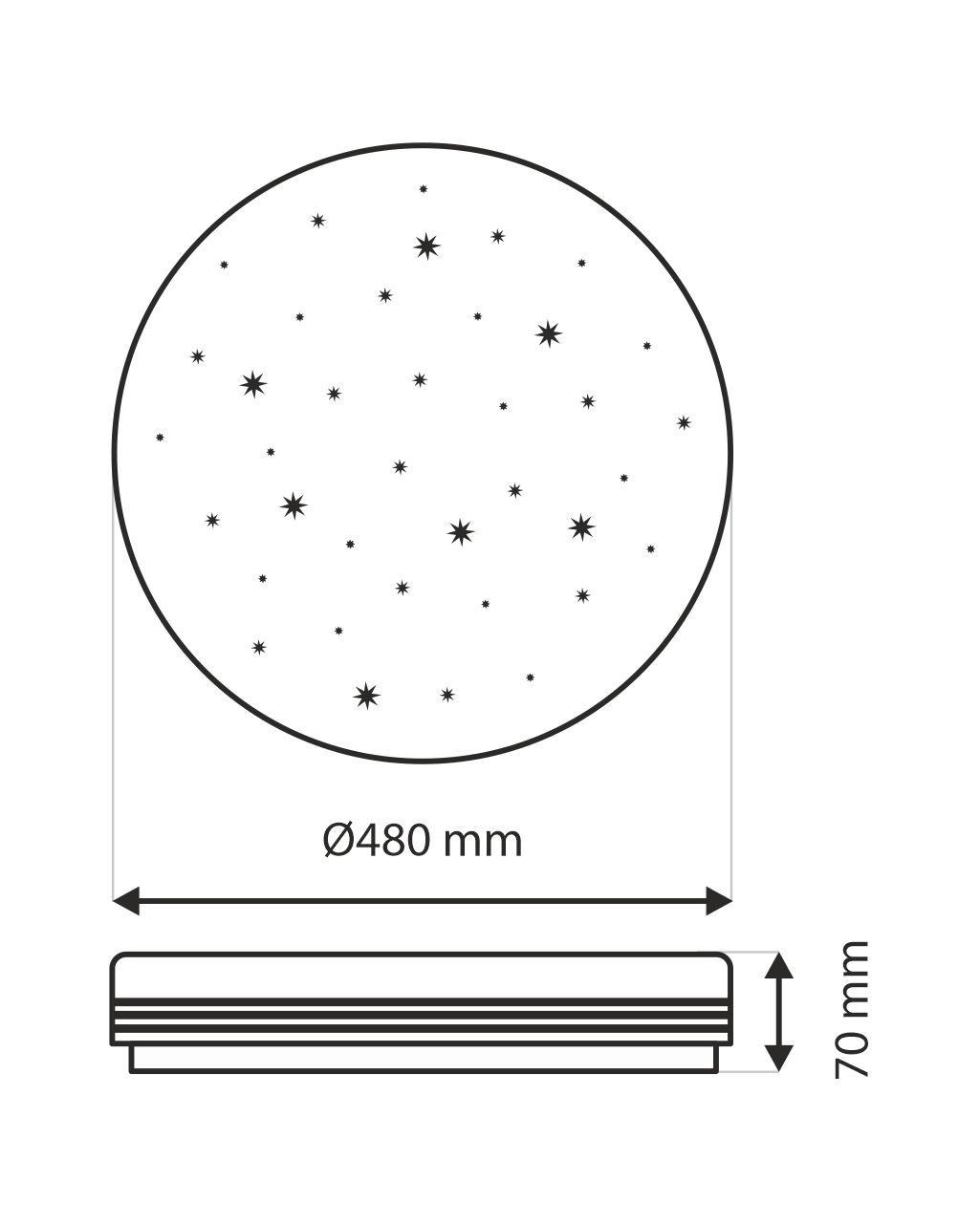 Zewnętrzny wymiar światła: ø480x70mm