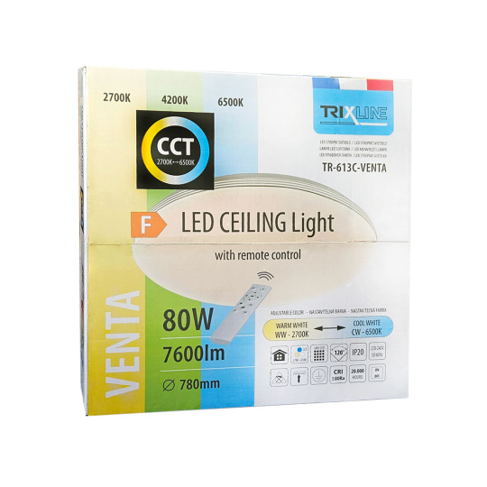 LED sufitowa lampa TR-613C - VENTA 80W 7600lm ø78cm CCT + pilot Trixline