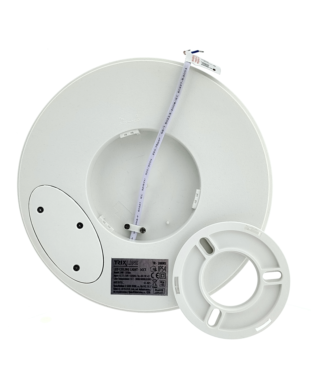 Nowoczesna i wydajna LED CCT lampa sufitowa TR-200NS Trixline - zapewnia wysokiej jakości i równomierne oświetlenie o mocy 2050 lumenów.Regulowane CCT umożliwia wybór ciepłej, neutralnej lub zimnej białej barwy światła (3000K/4000K/6500K) dla optymalnego dostosowania atmosfery pomieszczenia. Temperatura światła jest regulowana pod osłoną z tyłu za pomocą suwaka. Przyjemne i efektywne oświetlenie, które spełni Twoje estetyczne i praktyczne wymagania. Oprawę można zainstalować w różnych miejscach dzięki jej uniwersalnym właściwościom i klasie ochrony IP54, która zapewnia ochronę przed pyłem i rozpryskami wody.