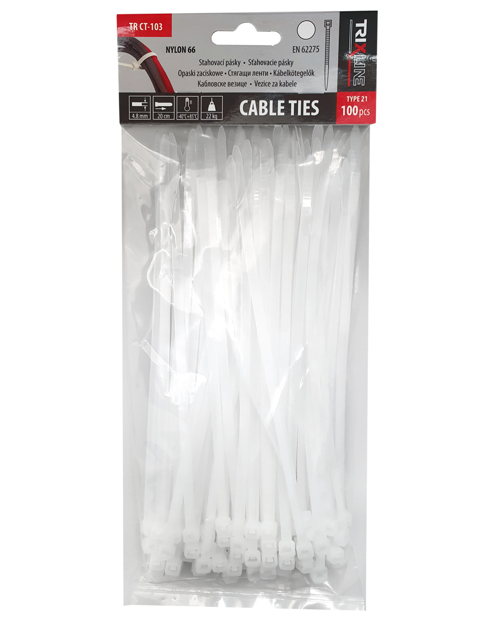 Bezpečnostní informace (PDF)Opaski zaciskowe TR CT-103 200x4,8mm, białe TRIXLINE, 100 szt.