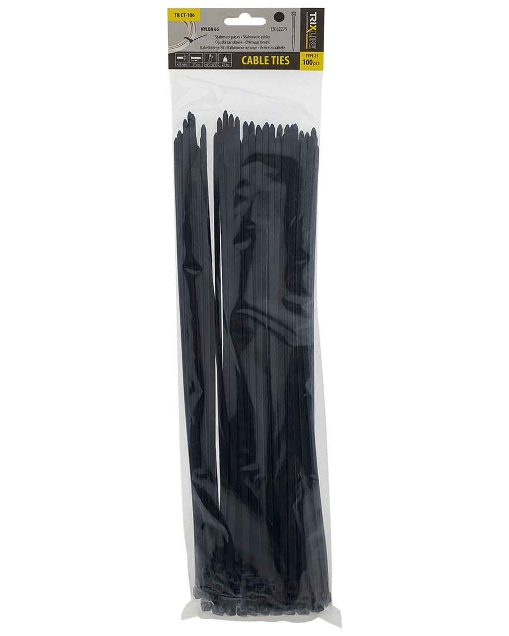 Bezpečnostní informace (PDF)Opaski zaciskowe TR CT-106 370x4,8mm, czarne TRIXLINE, 100 szt.