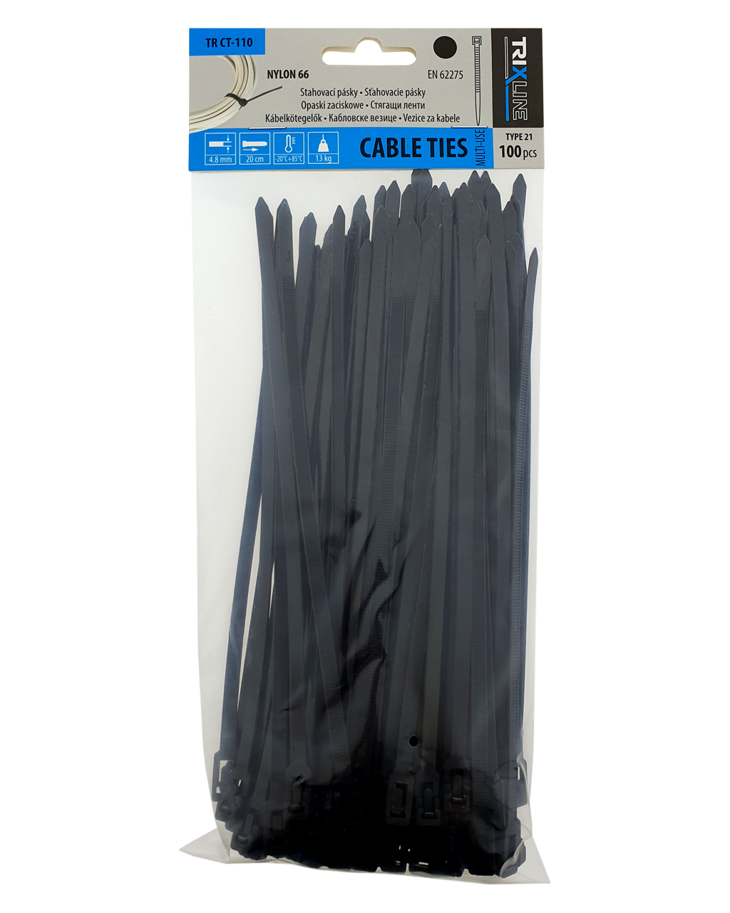 Bezpečnostní informace (PDF)Opaski zaciskowe TR CT-110 200x4,8mm, czarne TRIXLINE, 100 sztuk odblokowujące