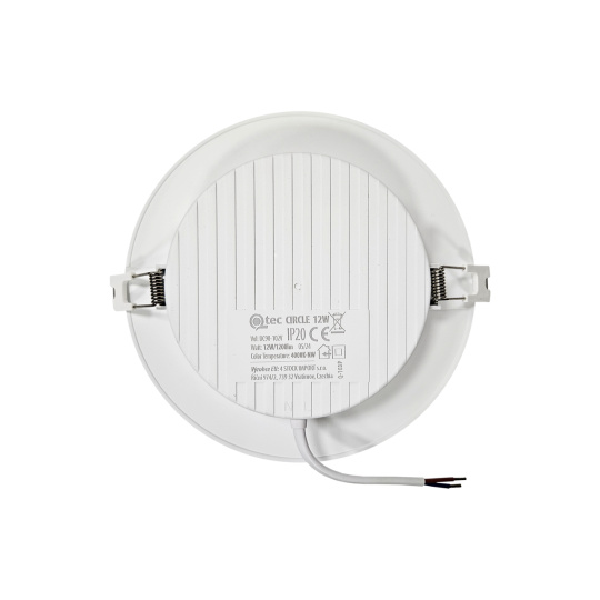 Panel jest wykonany z plastiku. Dzięki zastosowanej technologii LED zaoszczędzisz do 85% energii. Jest przeznaczony do wnętrz do wbudowania w karton-gips z otworem montażowym o średnicy 12,6cm. Zewnętrzny wymiar światła to ø170,8x28,4cm. Szybka i łatwa instalacja za pomocą przewodów L i N (nie jest potrzebny transformator).- Moc: 12W