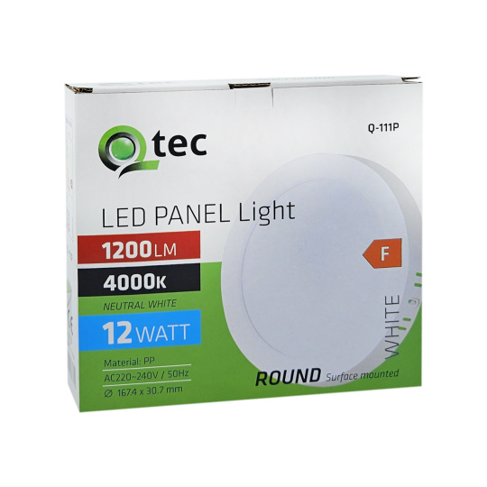Bezpečnostní informace (PDF)Panel LED Q-111P 12W 1200lm 4000K biały - okrągły natynkowy Qtec
