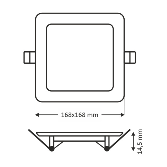 - Zewnętrzny wymiar światła: 168x168x14,5mm
