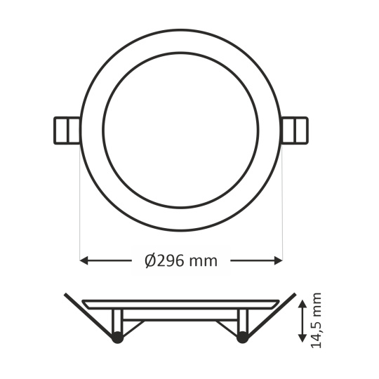 - Zewnętrzny rozmiar światła: ø296x14,5mm