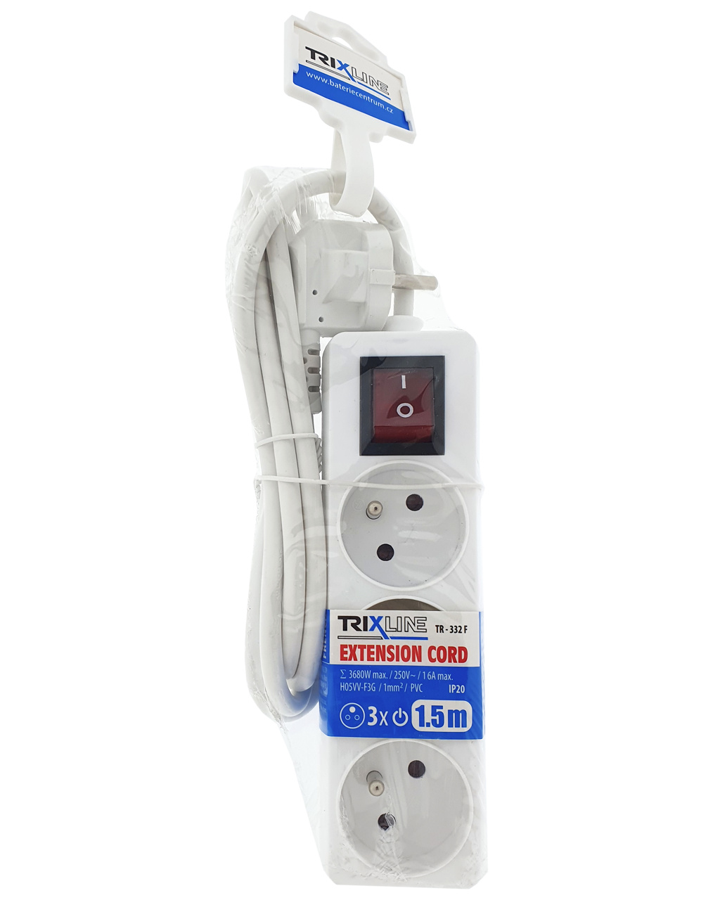 Przedłużacz 3 gniazda z wyłącznikiem, 1,5m, TR 332 F TRIXLINE