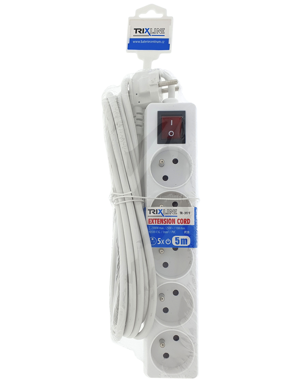 Przedłużacz 5 gniazd z wyłącznikiem, 5m, TR 317 F TRIXLINE