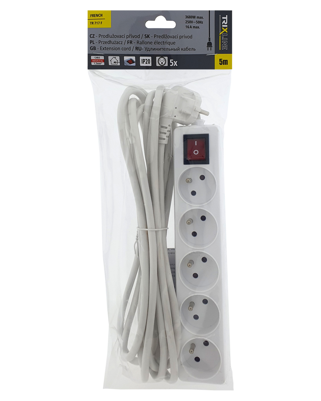 Przedłużacz 5 gniazd z wyłącznikiem, 5m, TR 717 F