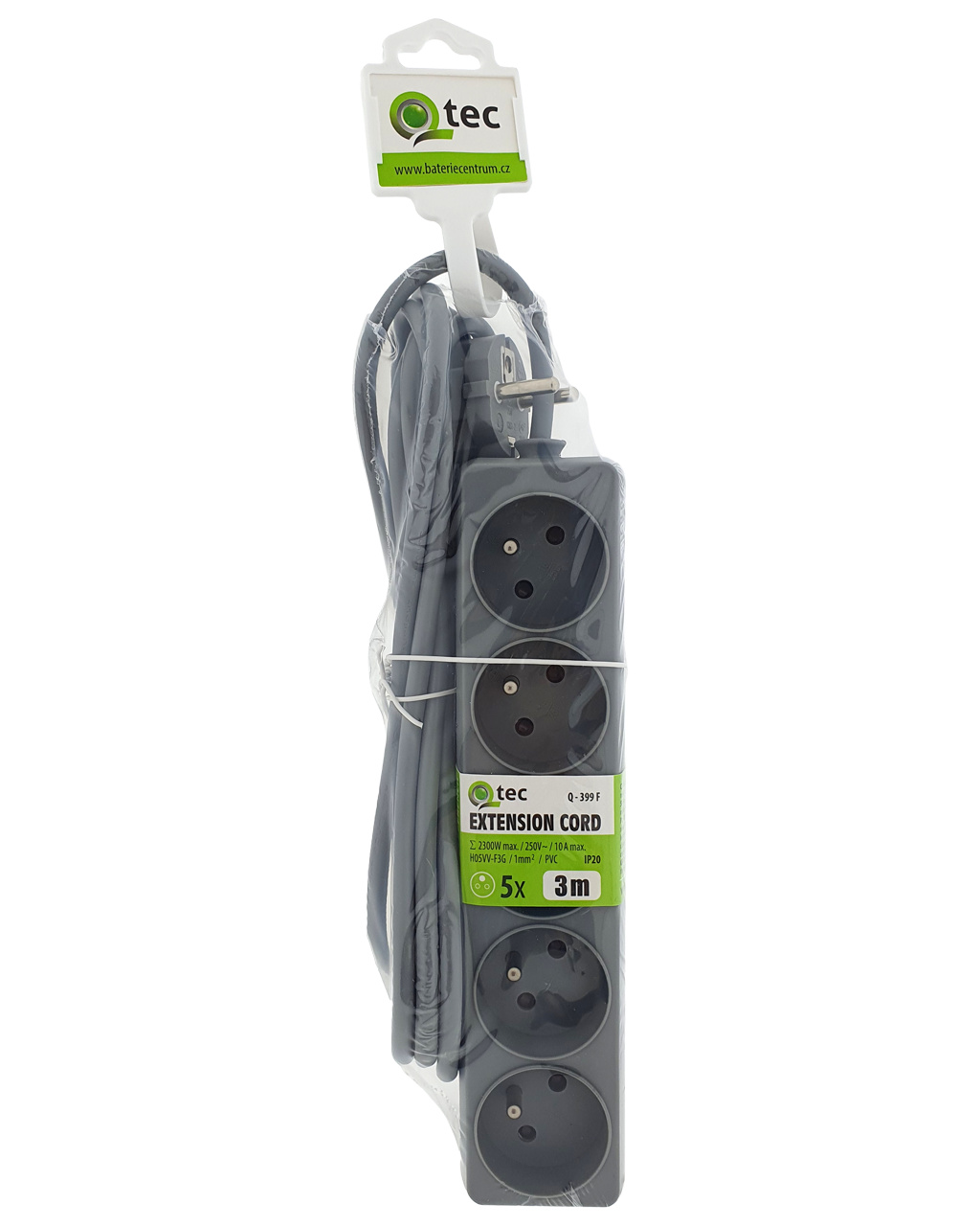 Przedłużacz szary 5 gniazd, 3m, Q-399F QTEC