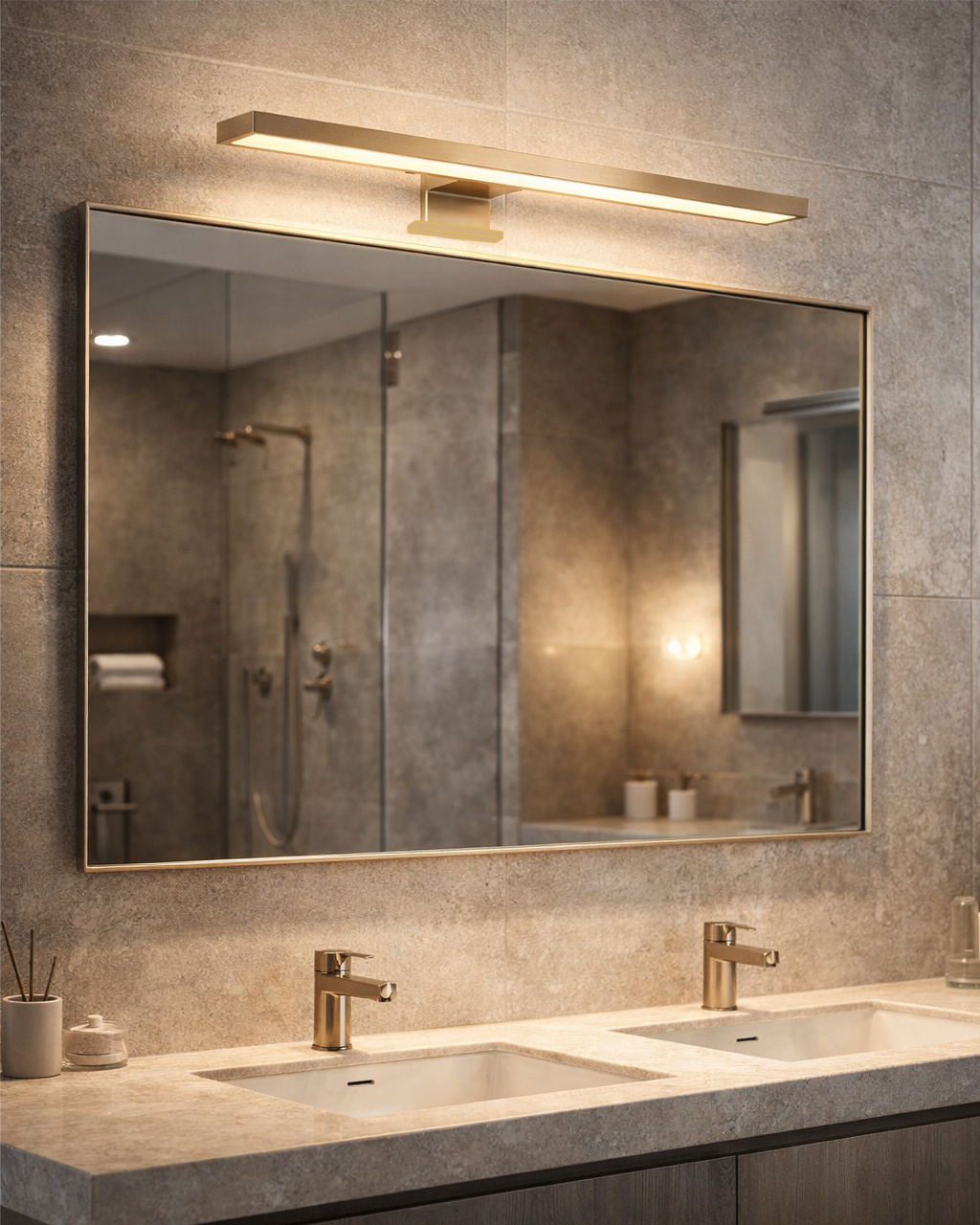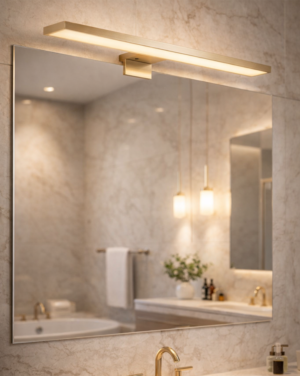 Zaletą oświetlenia ściennego do łazienki Q-305G Qtec 8W jest nowoczesny design, wysoka jakość wykonania, stopień ochrony IP44 umożliwia instalację światła w pomieszczeniach o podwyższonej wilgotności, np. łazienki, 3w1 sposoby montażu na lustro, szafkę lub ścianę. Źródłem światła są energooszczędne diody LED, które emitują neutralną białą barwę światła 4000K przyjemną dla oczu. Oświetlenie łazienkowe oferujemy w 4 wariantach kolorystycznych - matowe złote - błyszczące złote - czarne - chrom.