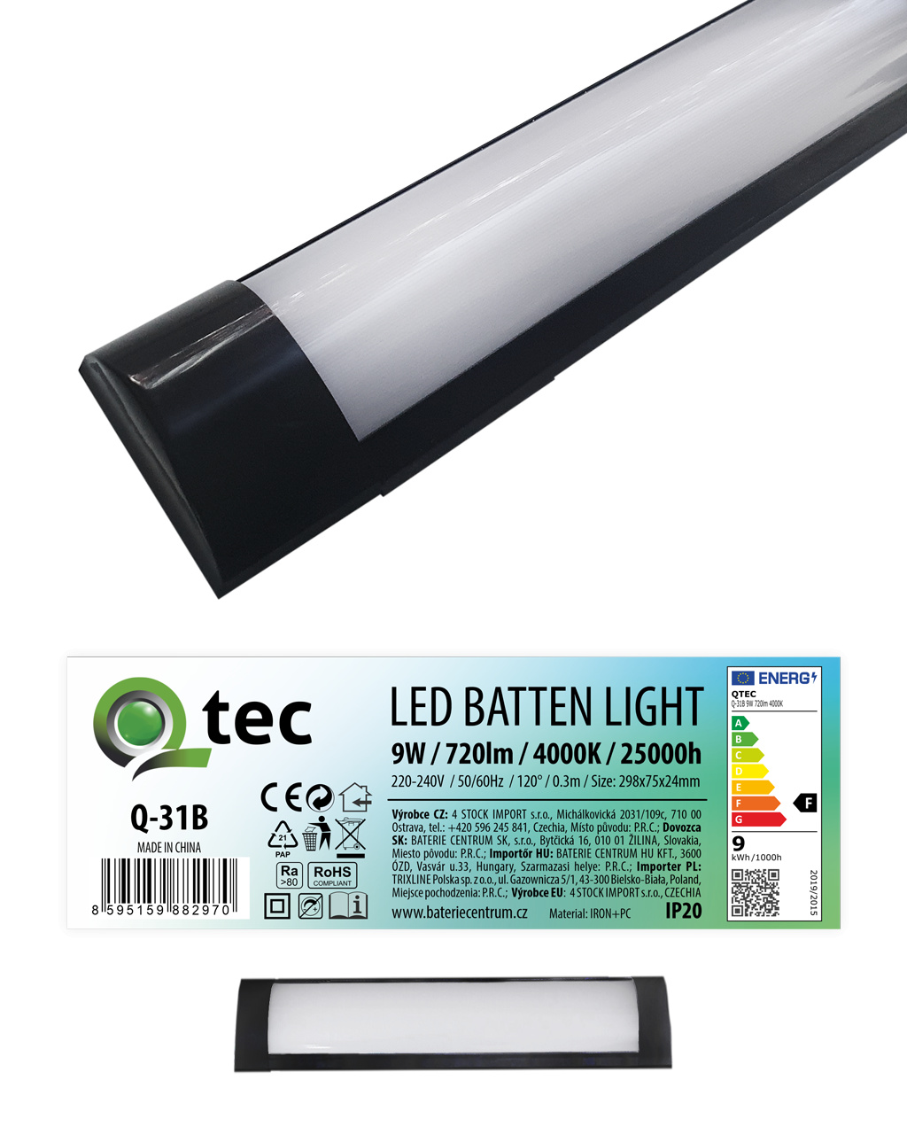 Q-31B 9W LED BATTEN LIGHT oświetlenie podszafkowe - czarne QTEC 30cm