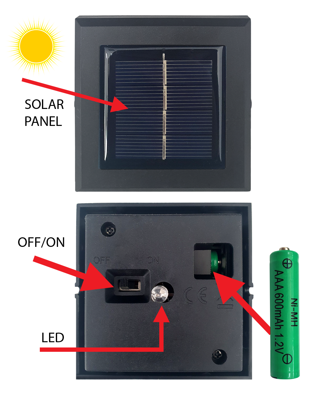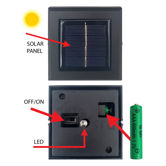 3. Pokrywa z panelem słonecznym, umieść na cały dzień w bezpośrednim świetle słonecznym.