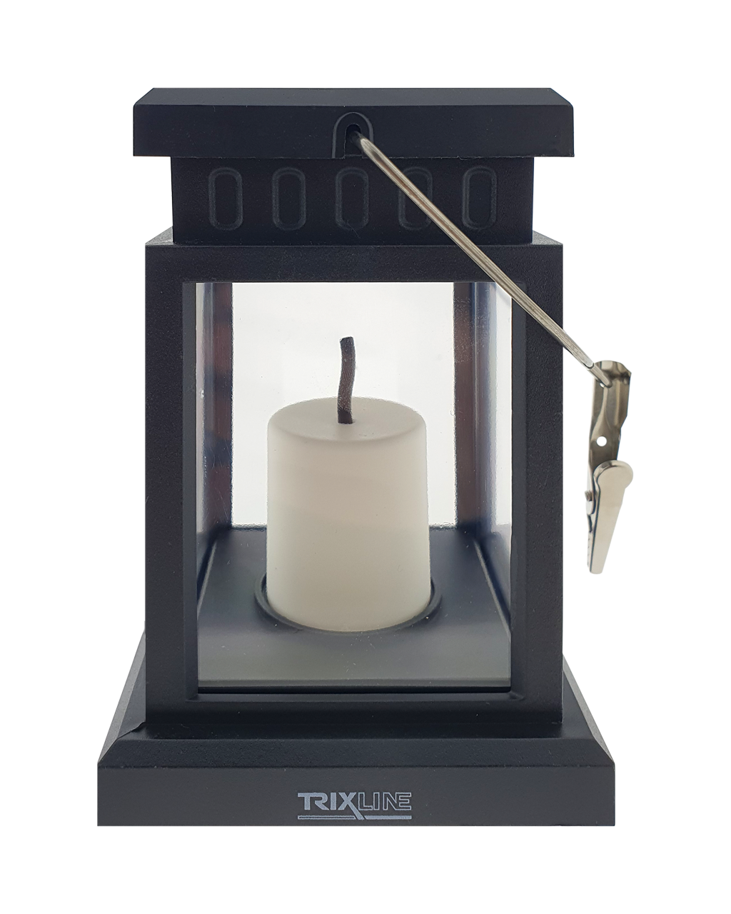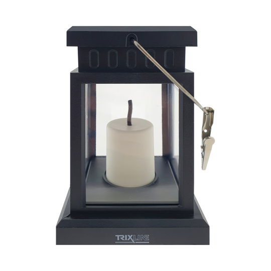 Solarny zewnętrzny, ogrodowy lampion TR 383S Trixline z białą świecą i żarówką LED imitującą klasyczny migoczący płomień świecy.Dzięki odporności na zachlapanie wodą IP44 latarnia oferuje szerokie zastosowanie. Odpowiednia jako dekoracja ogrodowa do oświetlenia tarasu, balkonu, pergoli, schodów, chodnika, a także podczas biwakowania, namiotowania, pikniku, grillowania i innych aktywności na świeżym powietrzu. Lampion można swobodnie położyć lub zawiesić na metalowym haczyku.Łatwość użycia - nie są potrzebne żadne narzędzia ani okablowanie. Aby automatycznie włączyć o zmierzchu, wystarczy użyć opcjonalnego przełącznika ON/OFF po wewnętrznej stronie pokrywy z panelem słonecznym.