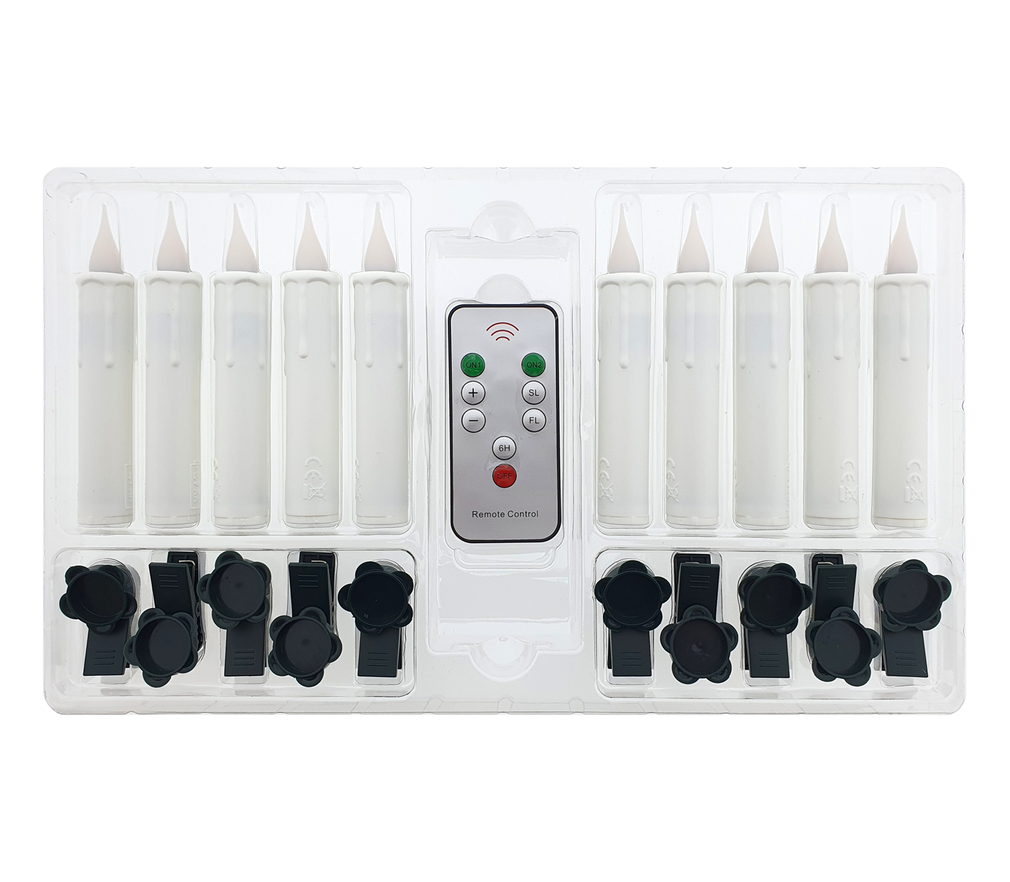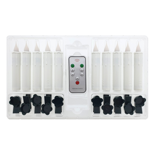 HD-500 Home Decor świąteczne świece LED 10 sztuk z klipsem i pilotem - bezprzewodowe na baterie AA.