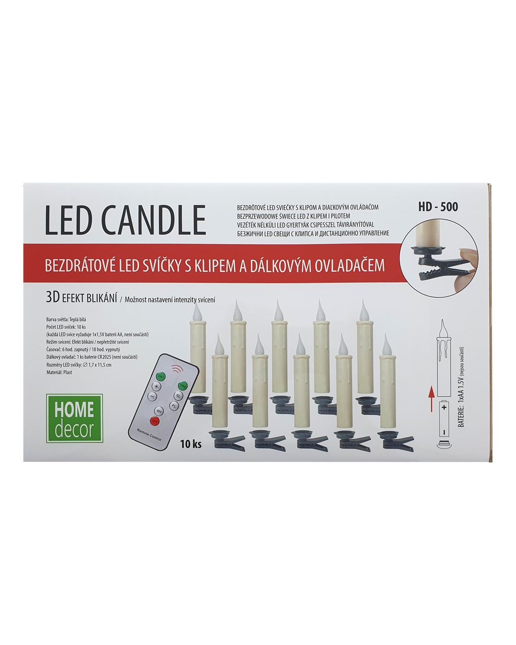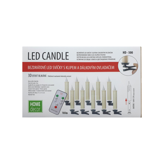 Bezpečnostní informace (PDF)Świece LED HD-500 na Boże Narodzenie 10 sztuk z klipsem i pilotem