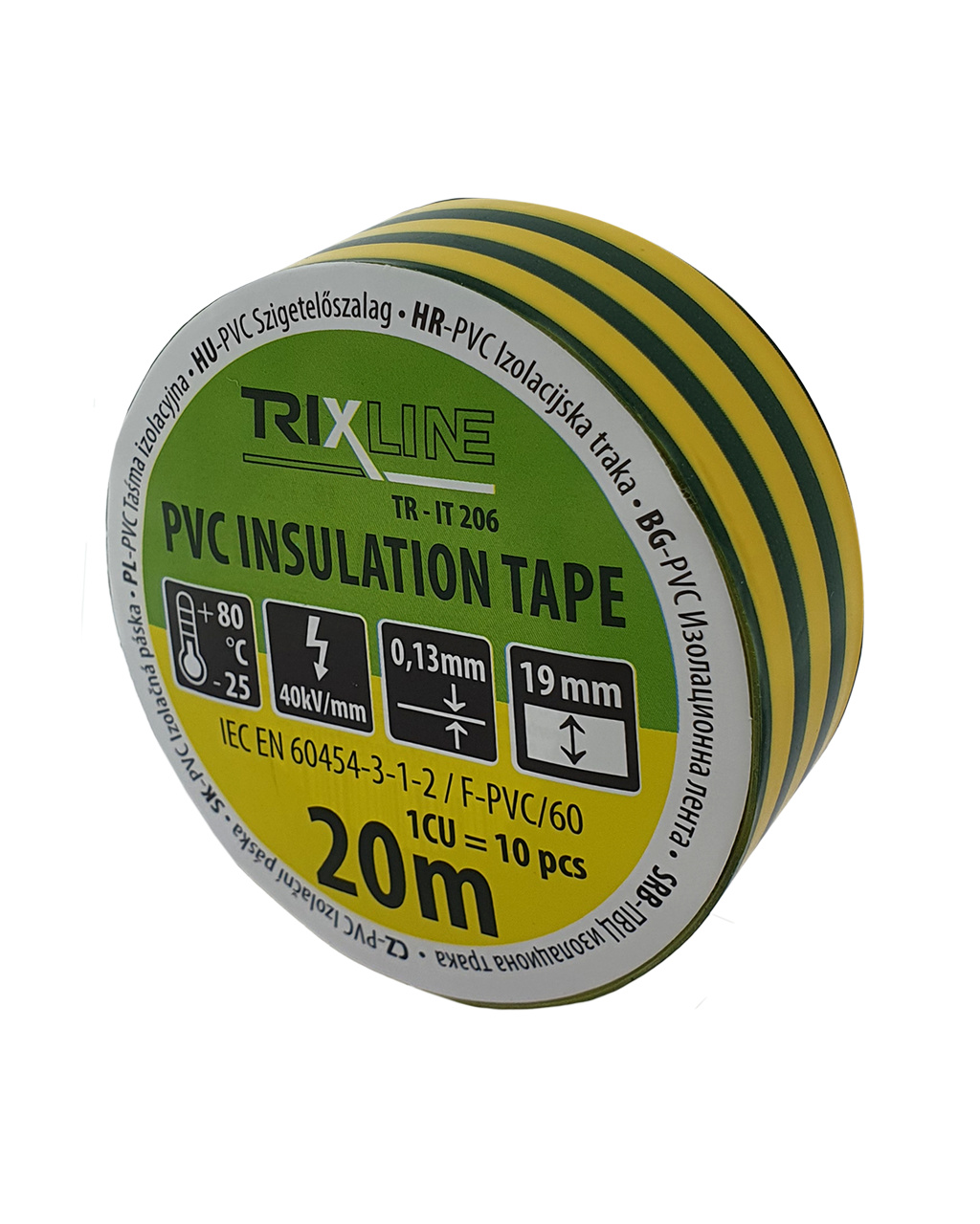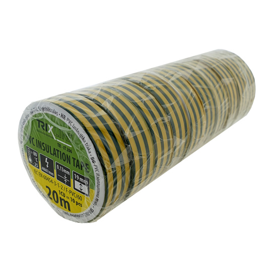 Taśma izolacyjna PVC TR-IT 206 20m, 0,13mm zielono-żółta TRIXLINE