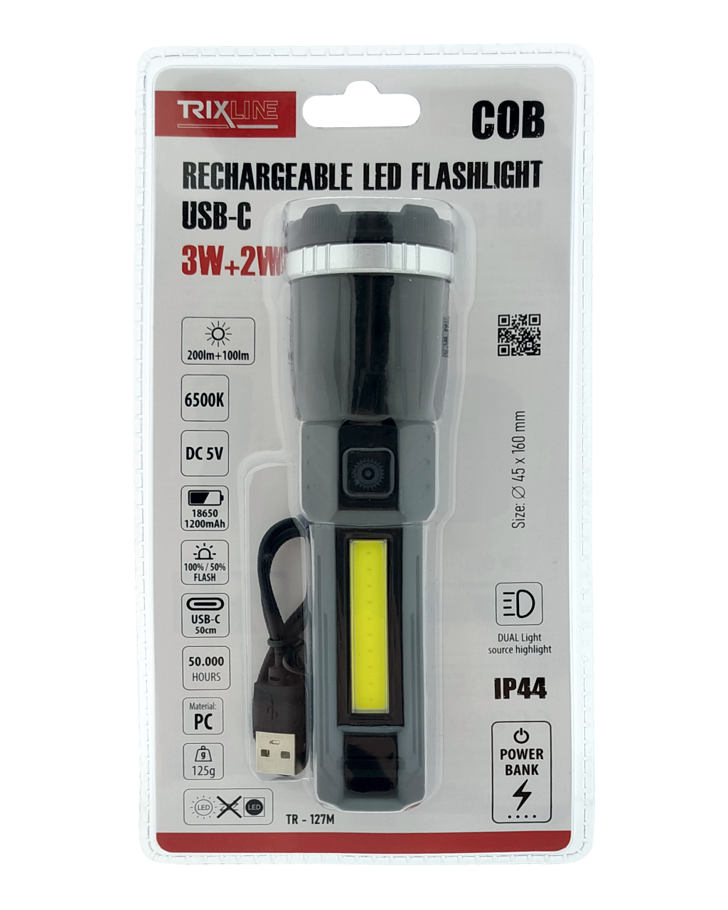 TR-127M COB LED Latarka ładowalna USB-C 3W + 2W