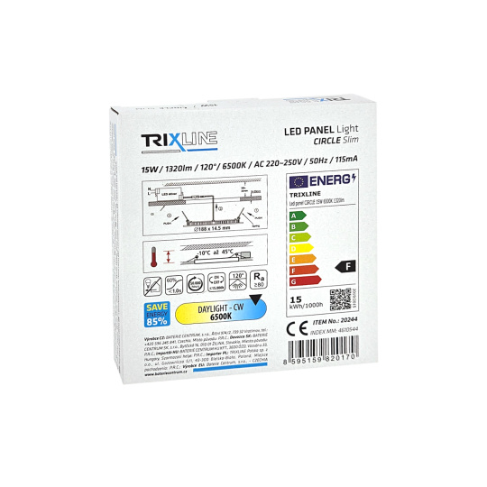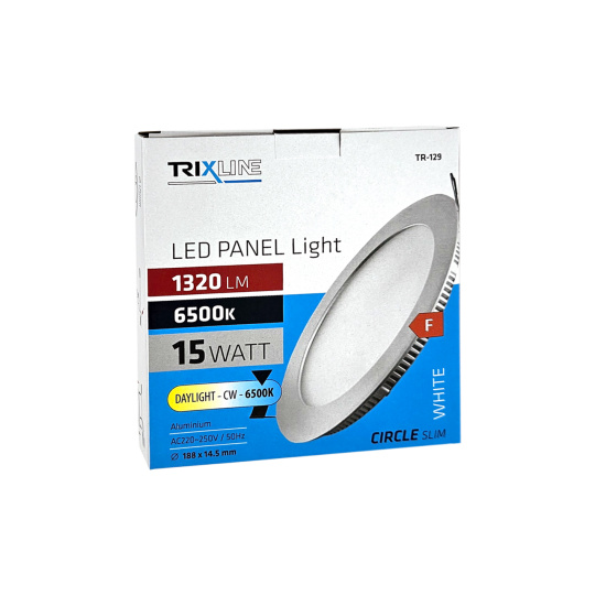 Okrągły wpuszczany panel LED Trixline TR-129 o mocy 15W z strumieniem świetlnym 1320lm i zimną białą barwą światła 6500K. Zimna biała barwa światła naśladuje jasne światło dzienne, jest odpowiednia do przestrzeni, w której musimy pracować. Wspiera koncentrację i zwiększa produktywność. Panel jest wykonany z wysokiej jakości aluminium. Dzięki zastosowanej technologii LED zaoszczędzisz do 85% energii. Jest przeznaczony do wnętrz do montażu w płycie gipsowo-kartonowej z otworem montażowym ø17,3cm. Zewnętrzny wymiar światła to ø18,8x1,45cm.