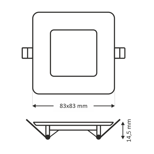 - Zewnętrzny wymiar światła: 83x83x14,5mm