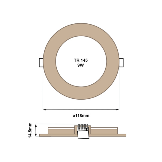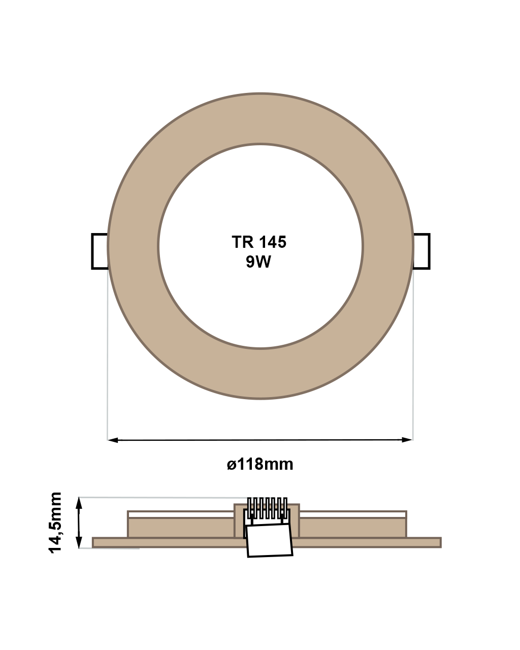 - Zewnętrzny wymiar światła: ø118x14,5mm