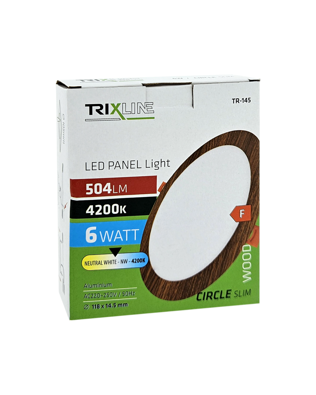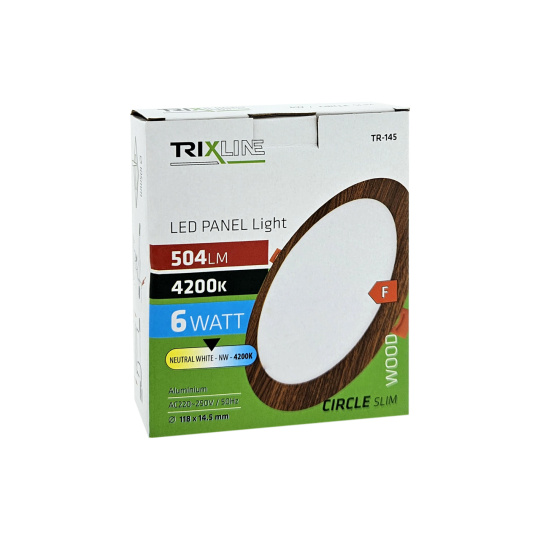 TR-145 Panel LED 6W 504lm 4200K dekor drewno - okrągły wpuszczany Trixline