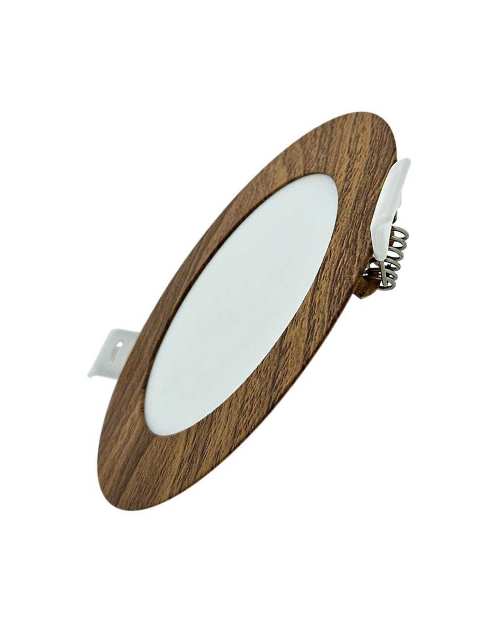 Imponujący design w dekorze drewna. Panel jest wykonany z wysokiej jakości aluminium. Dzięki zastosowanej technologii LED zaoszczędzisz do 85% energii. Jest przeznaczony do wnętrz do wbudowania w karton-gips z otworem montażowym o średnicy 10,3cm. Zewnętrzny wymiar światła to ø11,8x1,45cm. Szybka i łatwa instalacja.Kluczowe cechy: