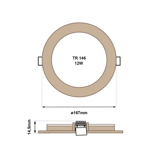 - Zewnętrzny wymiar światła: ø167x14,5mm