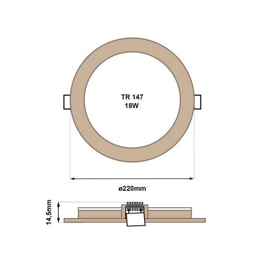 - Zewnętrzny wymiar światła: ø220x14,5mm
