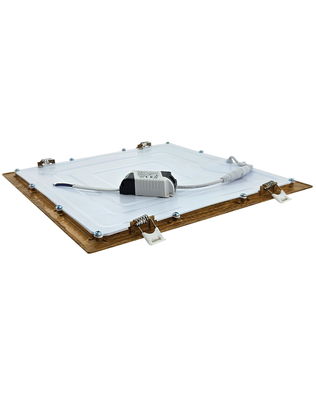 Imponujący design w dekorze drewna. Panel jest wykonany z wysokiej jakości aluminium. Dzięki zastosowanej technologii LED zaoszczędzisz do 85% energii. Jest przeznaczony do wnętrz do wbudowania w karton-gips z otworem montażowym 29,2x29,2cm. Zewnętrzny wymiar lampy to 27,7x27,7x1,45cm. Szybka i łatwa instalacja.Kluczowe cechy: